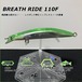 (商品説明)ブレスライド110F、リップレスミノーの開発を開始。主に、磯ヒラスズキゲームにてテストを繰り返しました。積層構造からなるボディ強度と、固定重心と形状による安定したスイミング性能。複雑に流れる磯際や、シモリ周りで威力を発揮!
